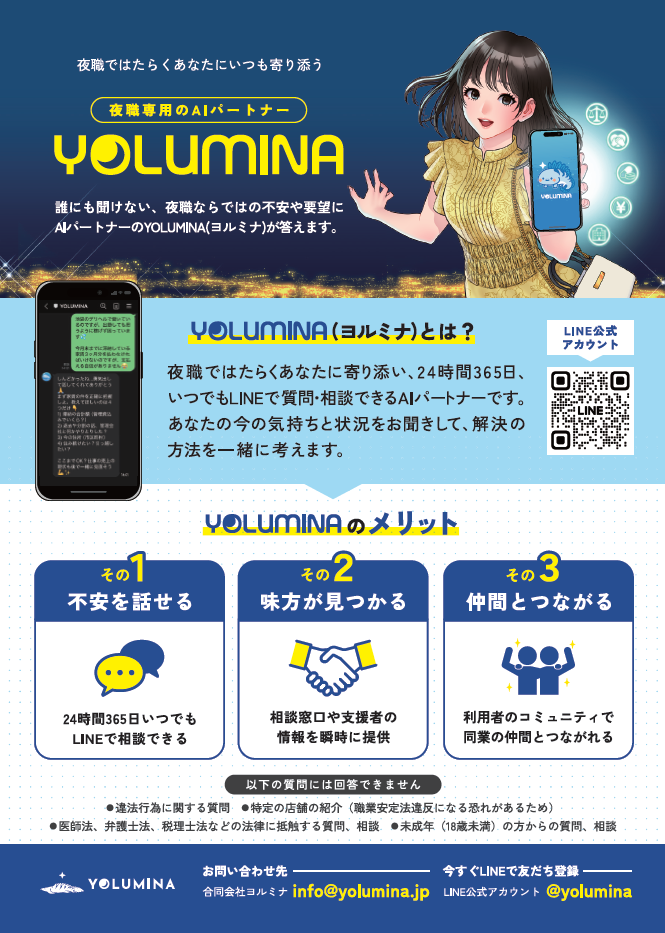 夜職専用AIパートナー「YOLUMINA(ヨルミナ)」、12月1日(月)からリリースを開始しております!
